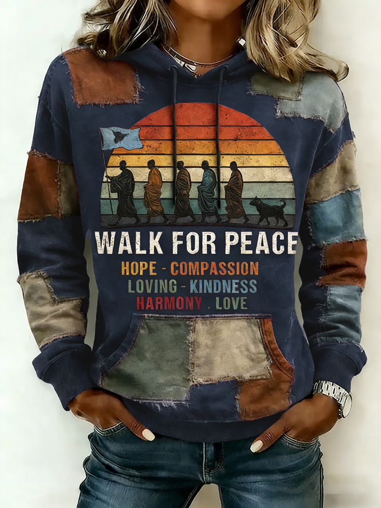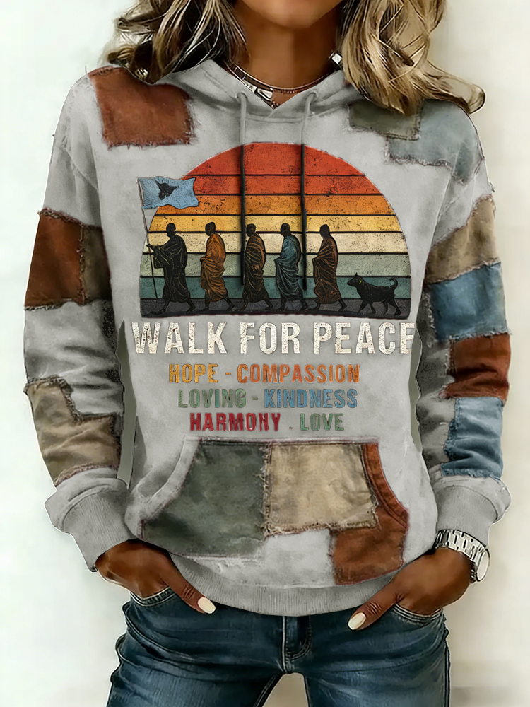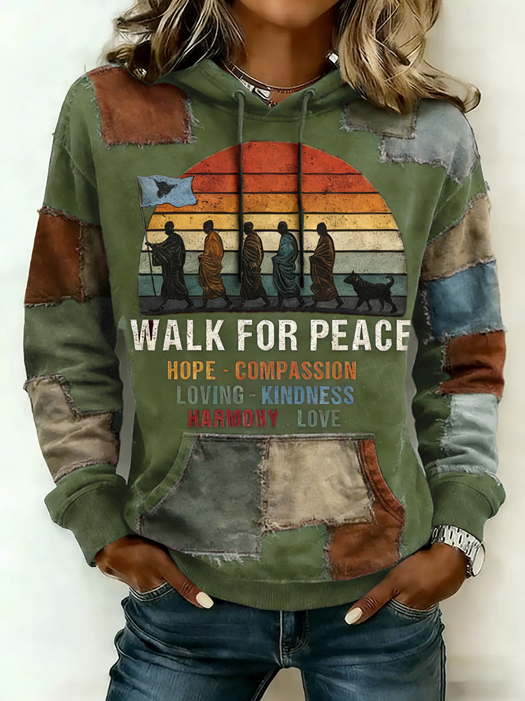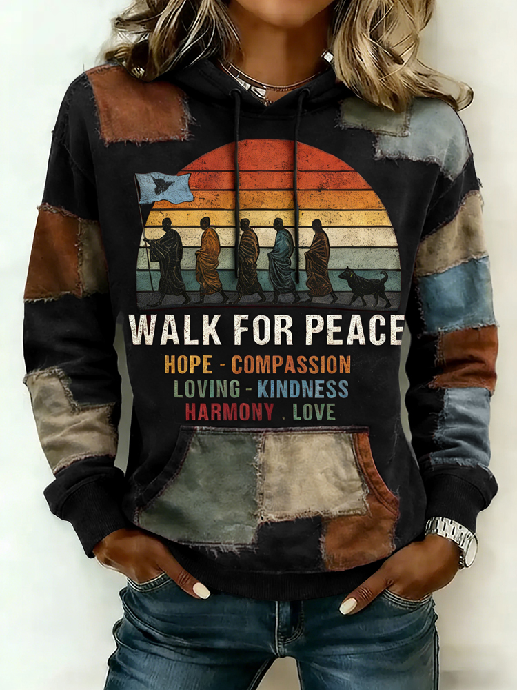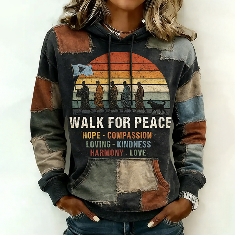 Walk For Peace Artistic Patchwork Print Women's Hoodie