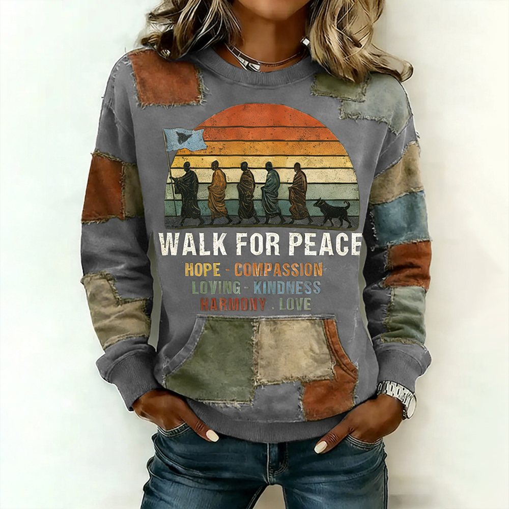 Walk For Peace Artistic Patchwork Print Women's Sweatshirt