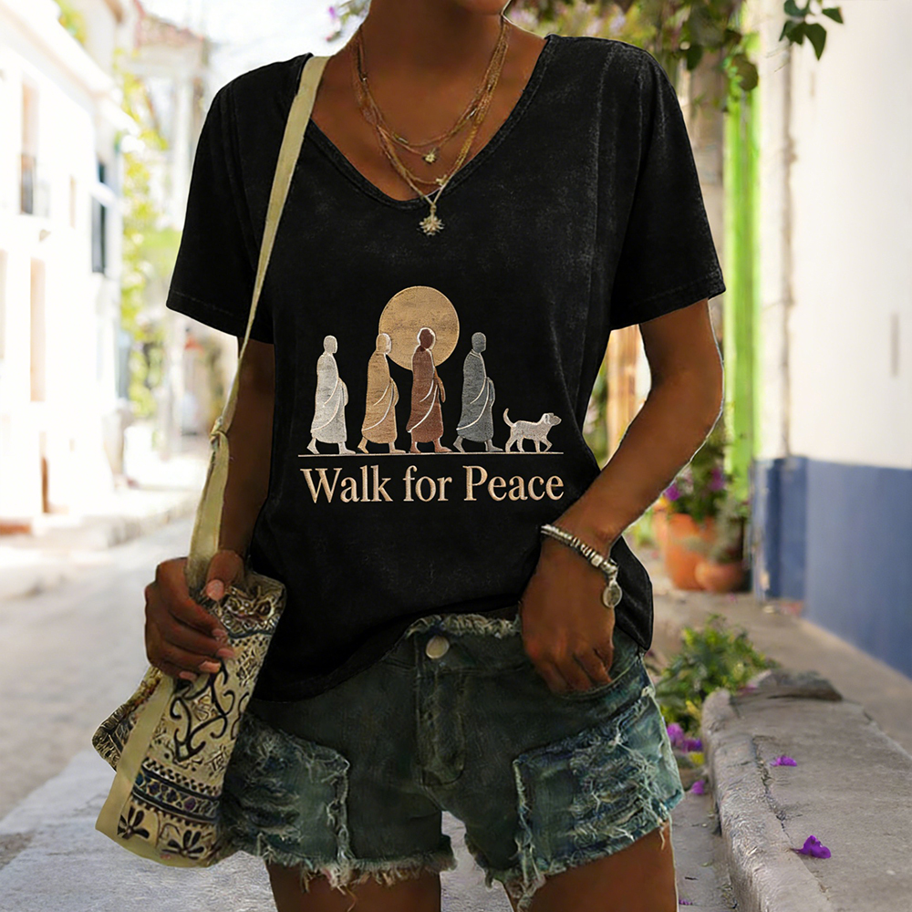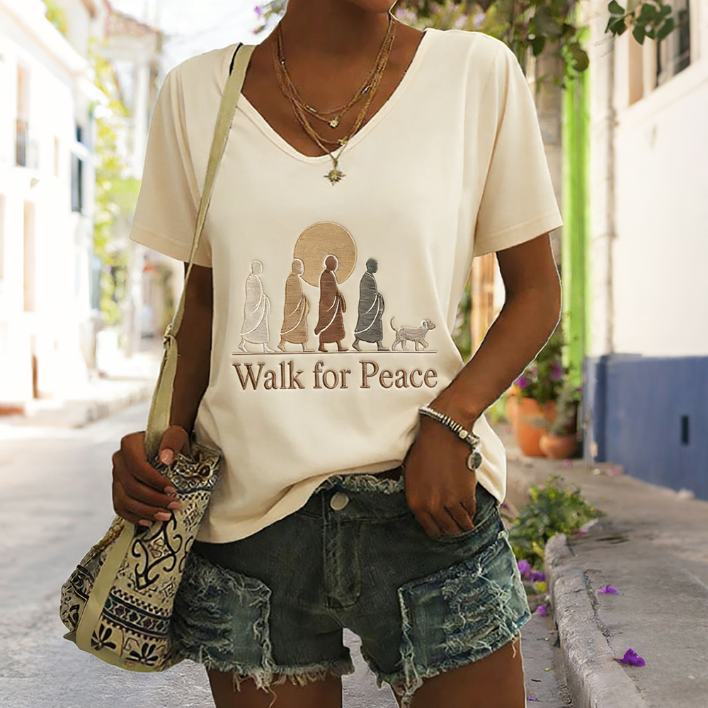 Walk For Peace Monks With Aloka Dog V Neck T Shirt