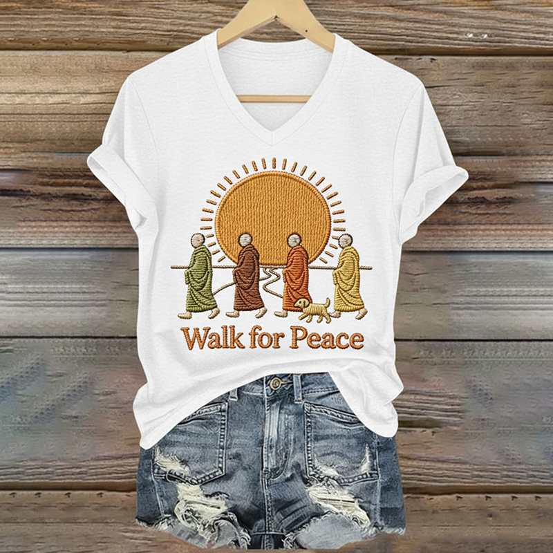 Walking For Peace Art Print V-neck T-shirt