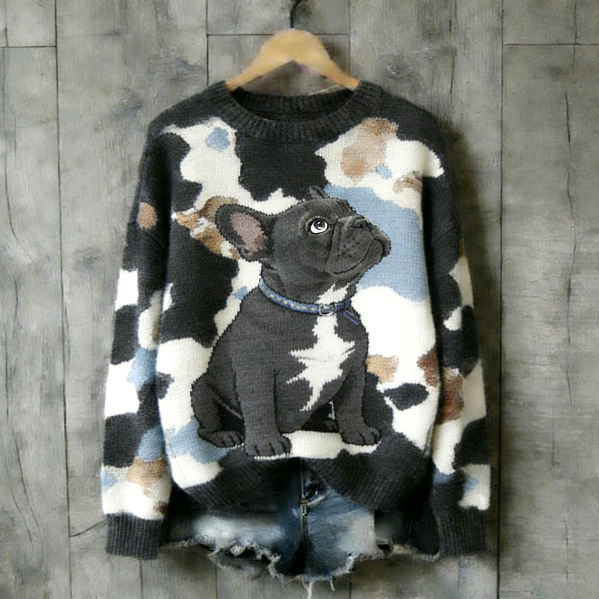 Women's Cute French Bulldog With Texture Art Print Crew Neck Sweater