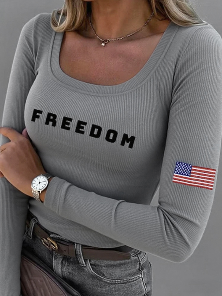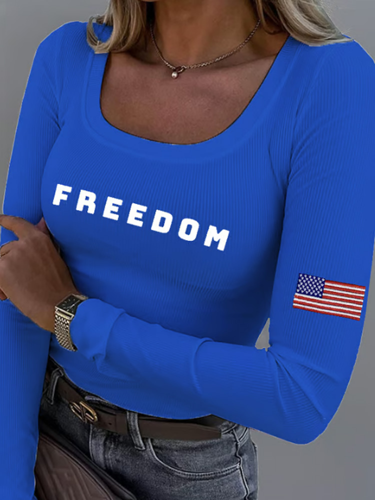 Women's Freedom American Flag Print Fabric Long Sleeve T-shirt