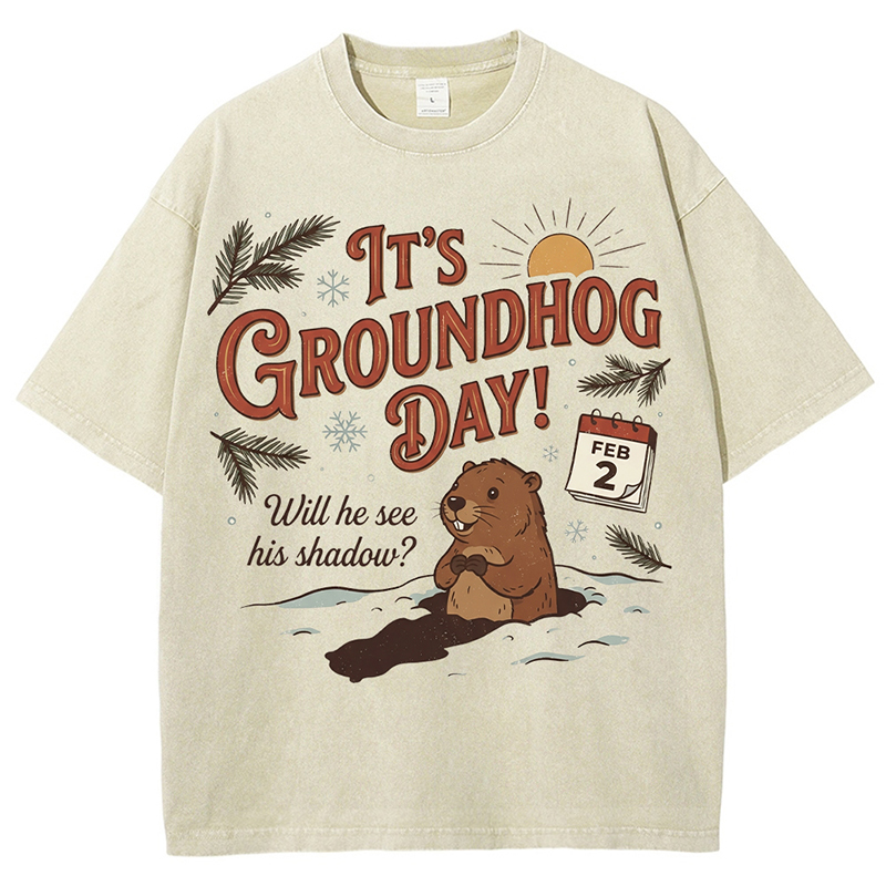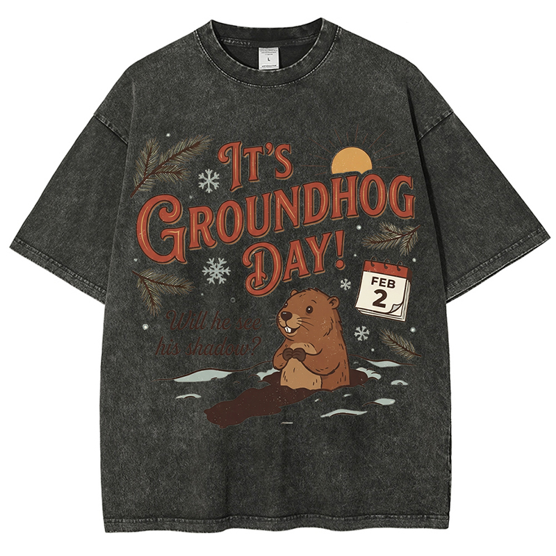 Women's Happy Groundhog Day Art Print Casual Tee