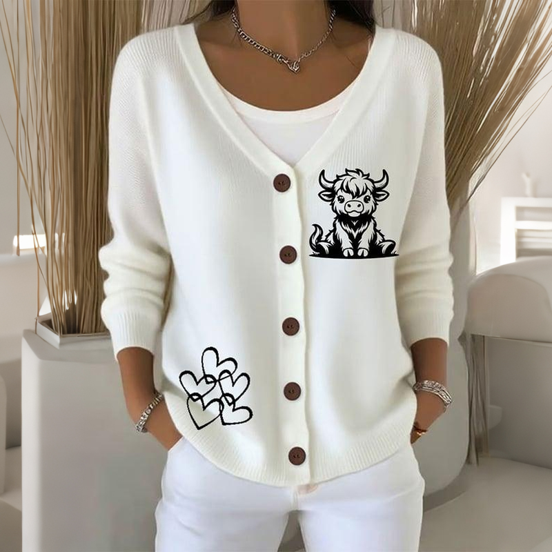 Women's Highland Cow Print V-neck Knit Cardigan