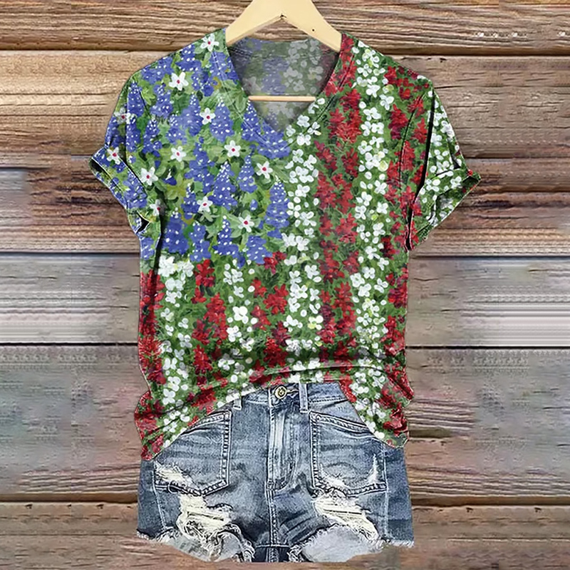 Women's Hippie Print V-neck T-shirt