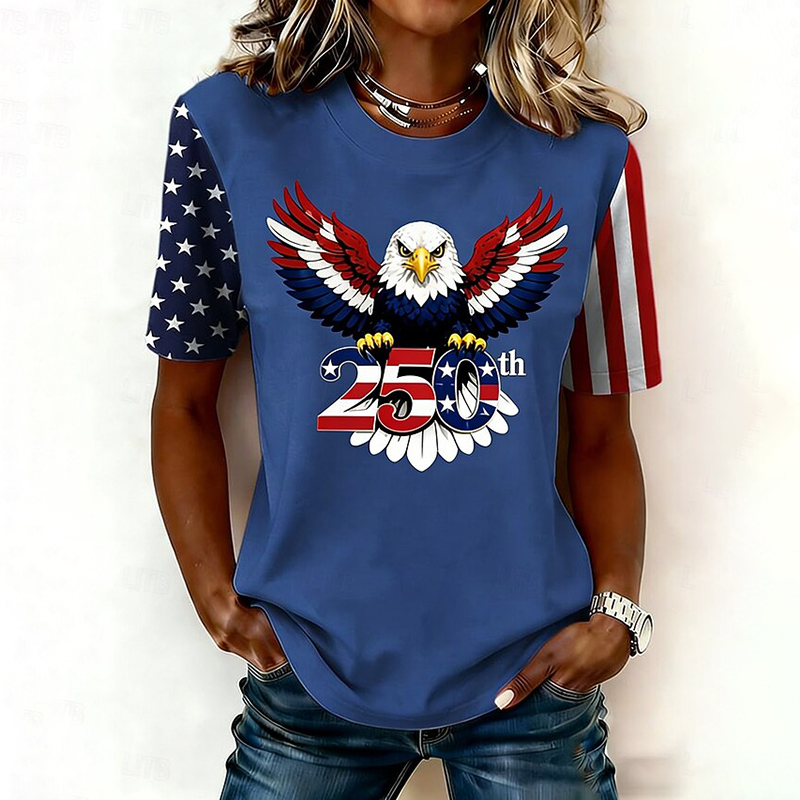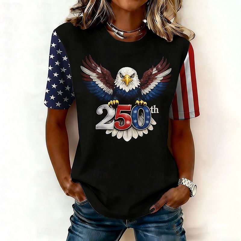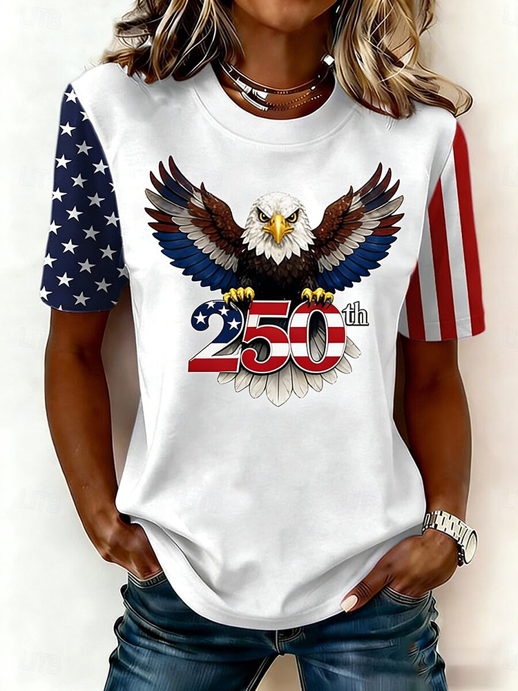 Women's Letter American Flag Print Stylish Classic Casual T Shirt