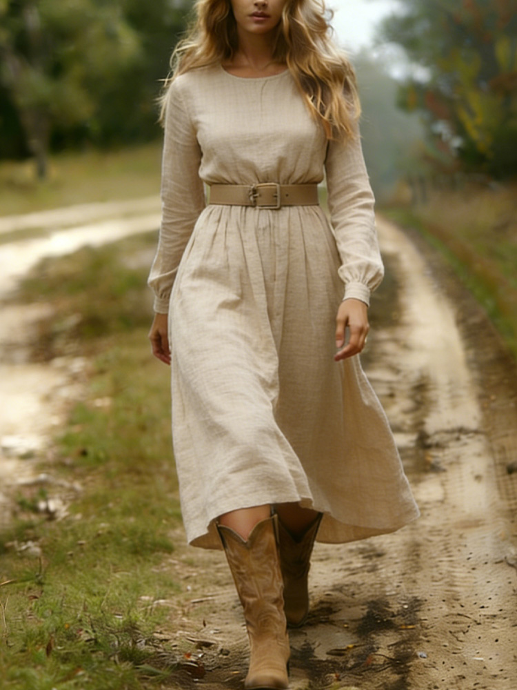 Women's Retro Casual Solid Color Dress