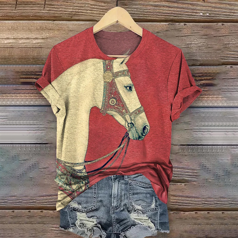 Women's Retro Tribal Horse Art Pattern Casual T-shirt