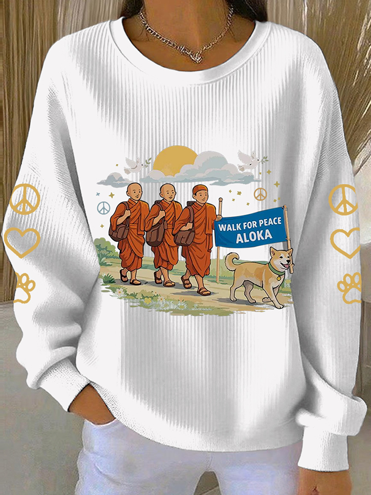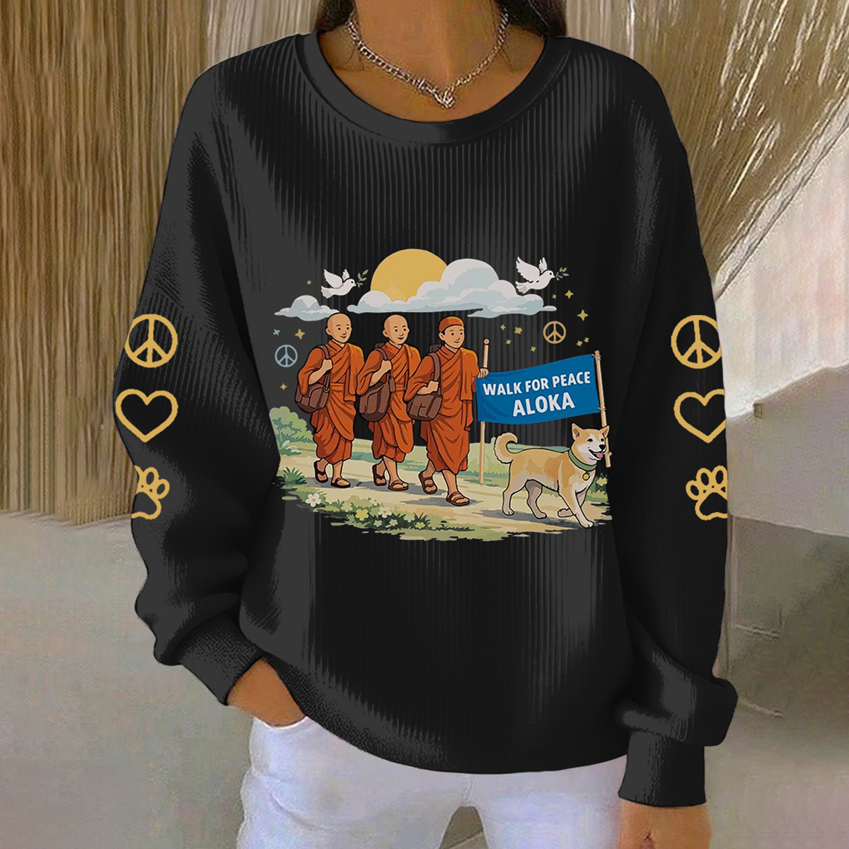 Women's Walk For Peace Monks With Aloka Dog Print Casual Sweatshirt