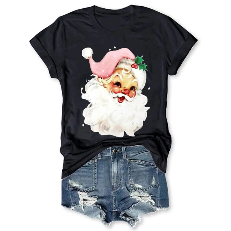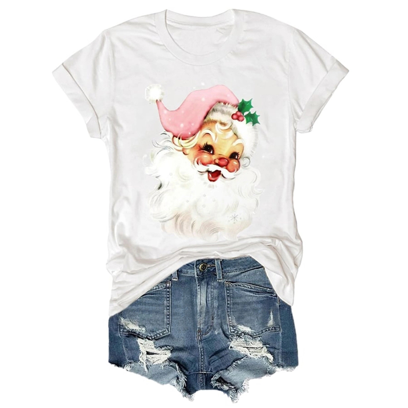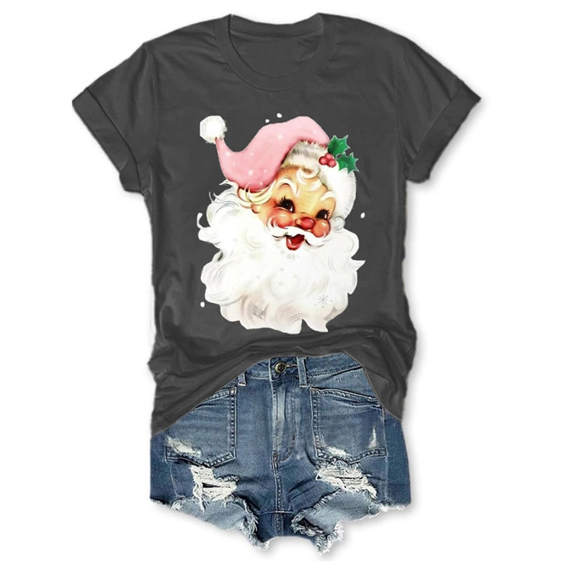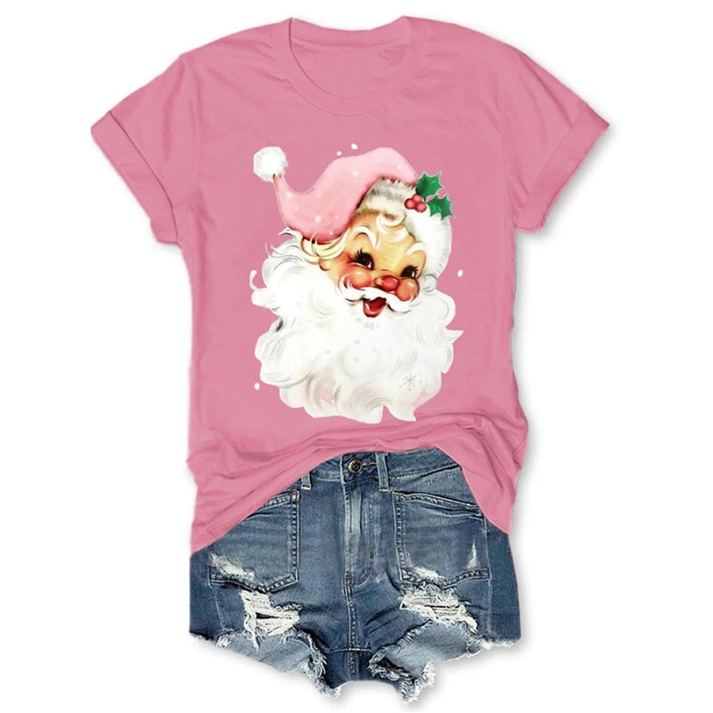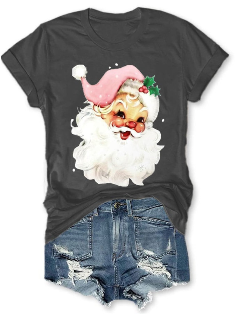 Christmas Retro Pink Santa Print T Shirt