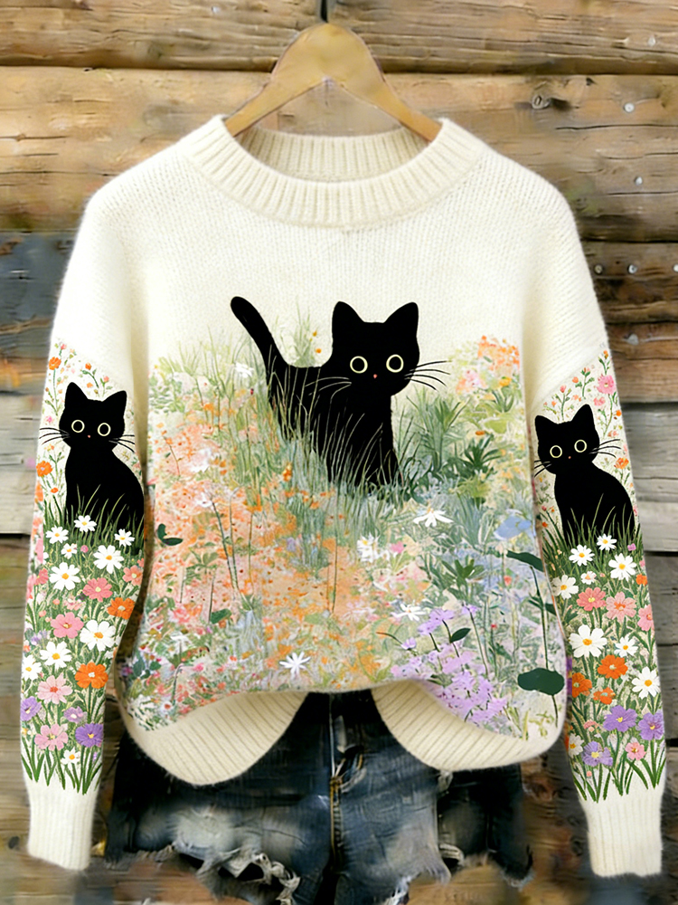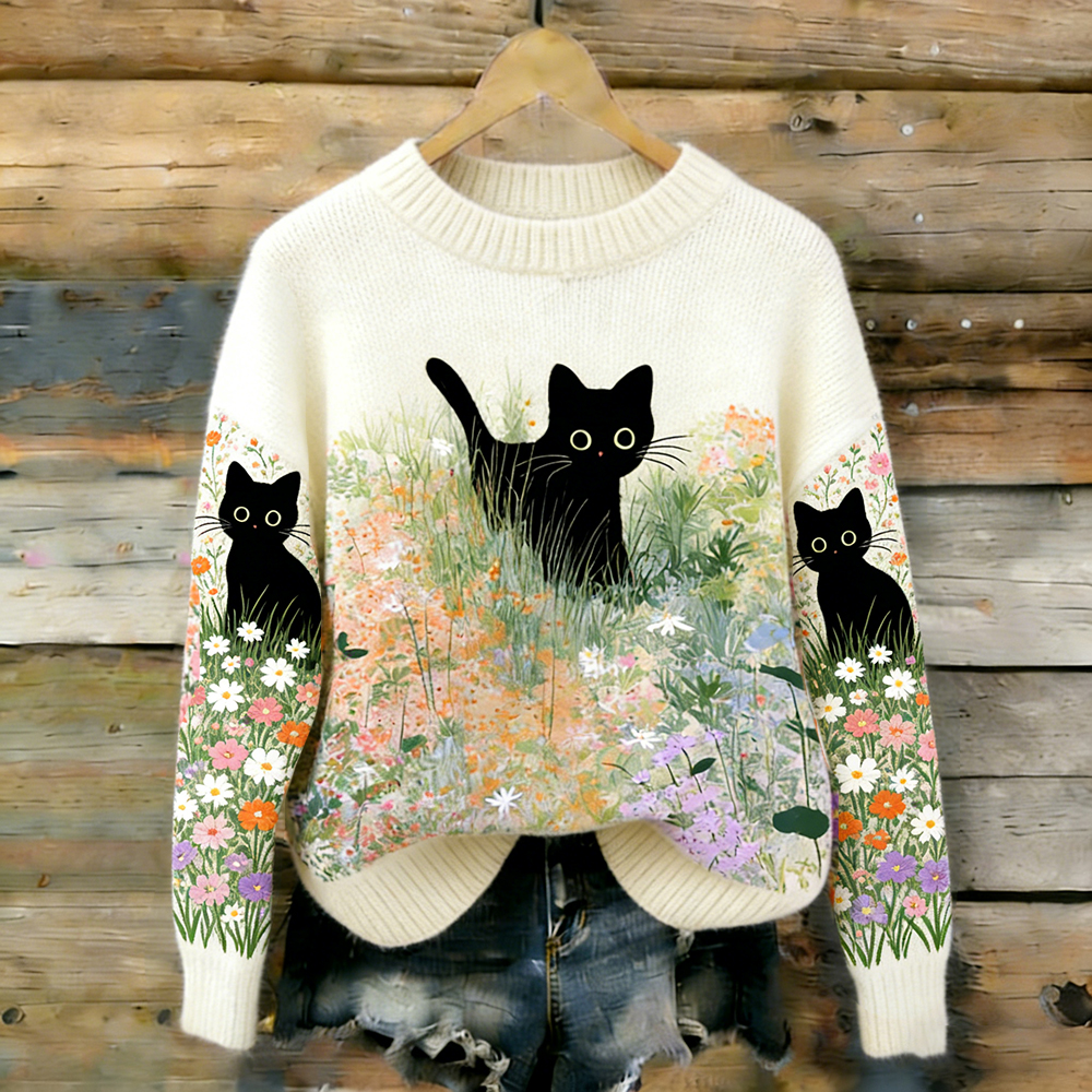 Hide And Seek Black Cat Turtleneck Sweater
