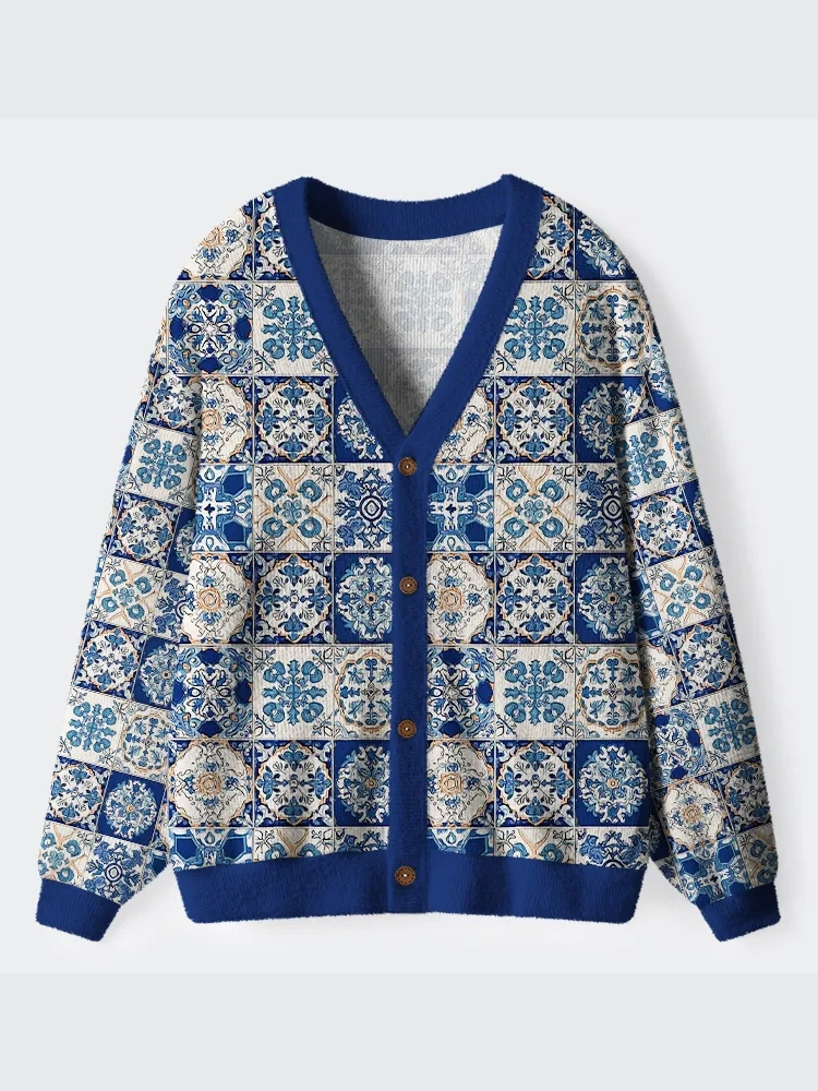 Mediterranean Mosaic Ugly Cardigan Sweater
