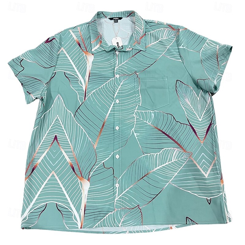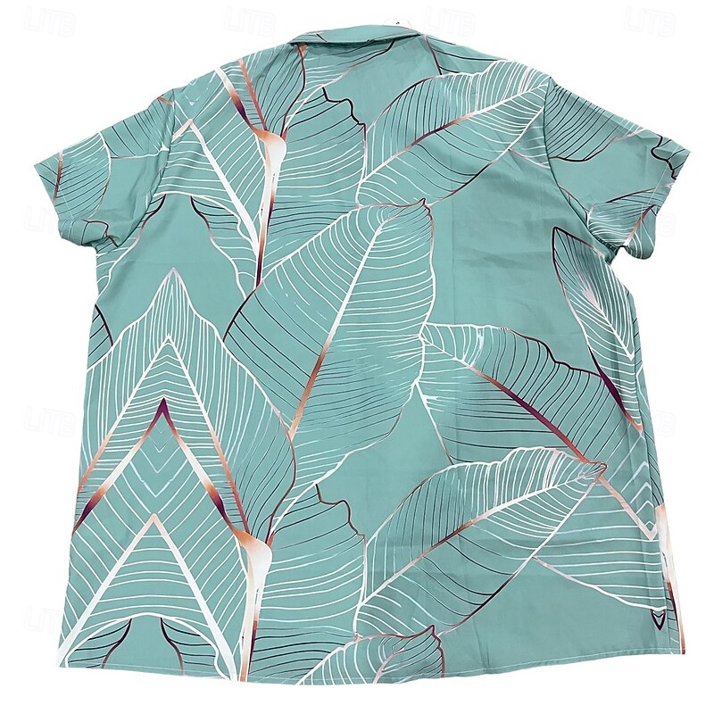 Men's Palm Leaf Tropical Plants Summer Button Hawaiian Shirt