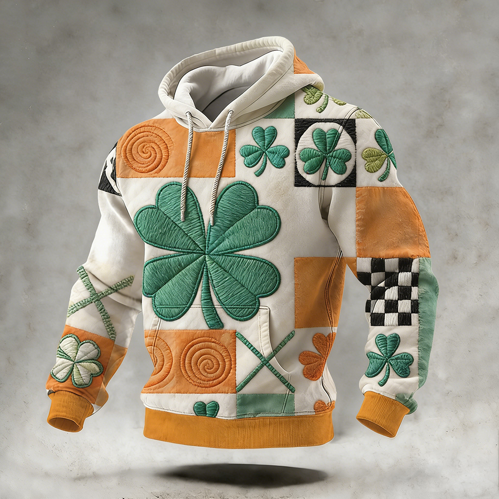 Men's St. Patrick's Shamrock Color Blocked Patchwork Retro Hoodie