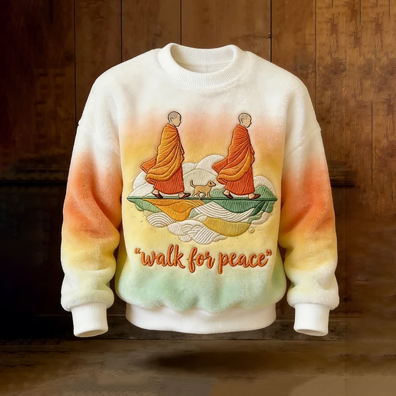 Men's Vintage Walk For Peace Art Retro Warm Flannel Sweatshirt