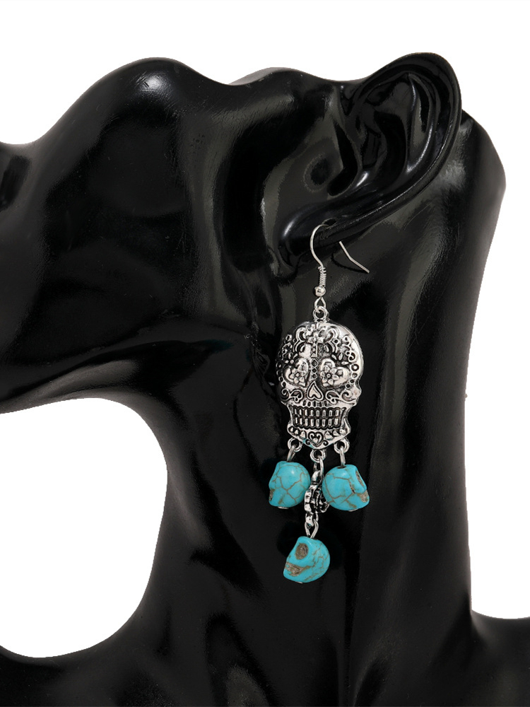 Sugar Skull Carved Turquoise Pendant Earrings
