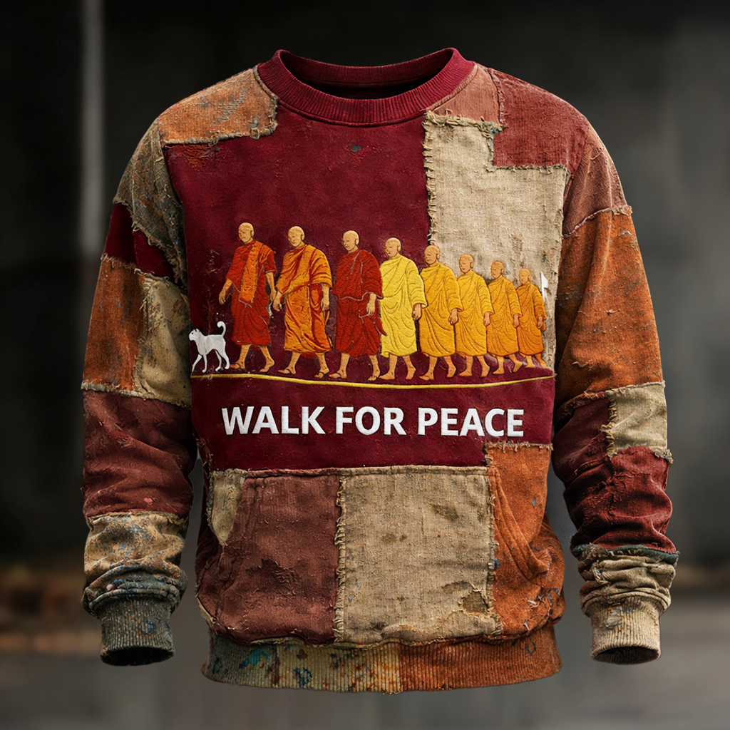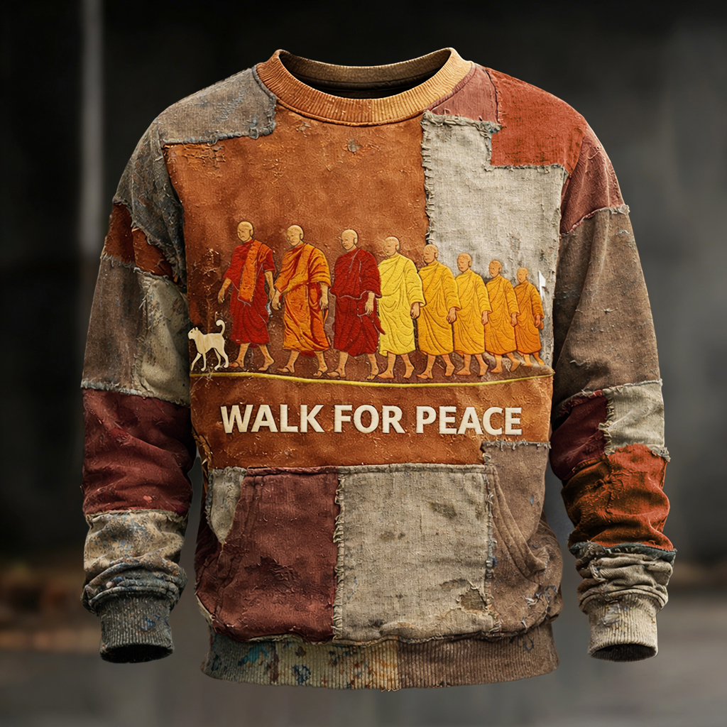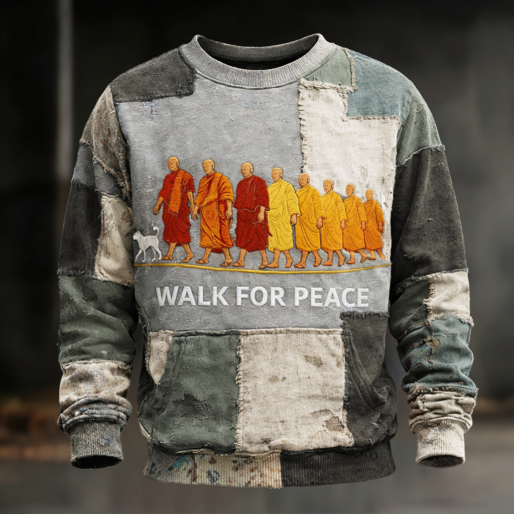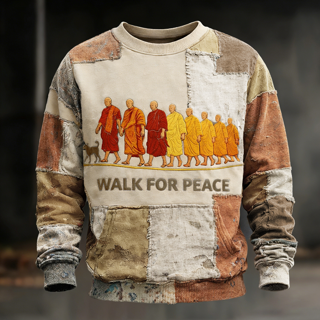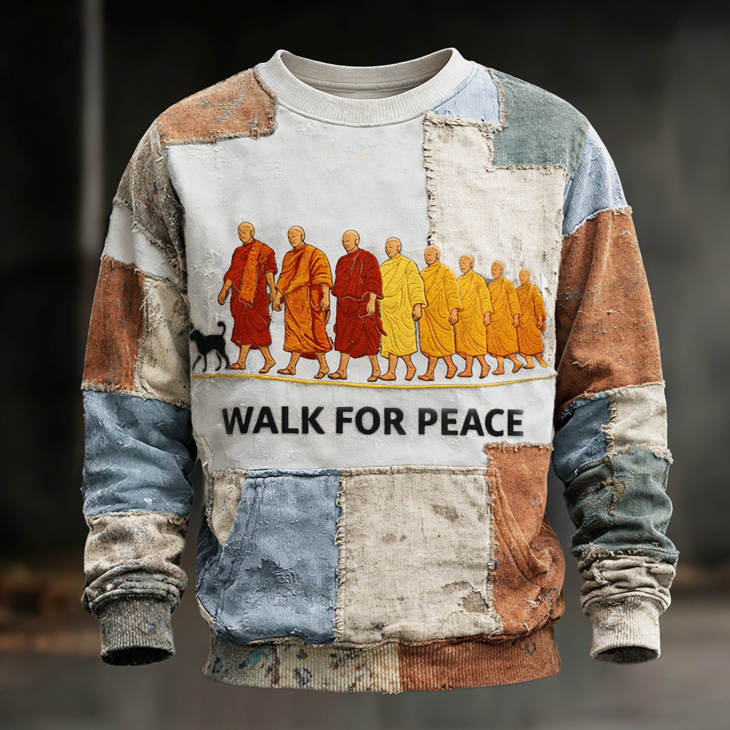 Walk For Peace Artistic Patchwork Print Sweatshirt