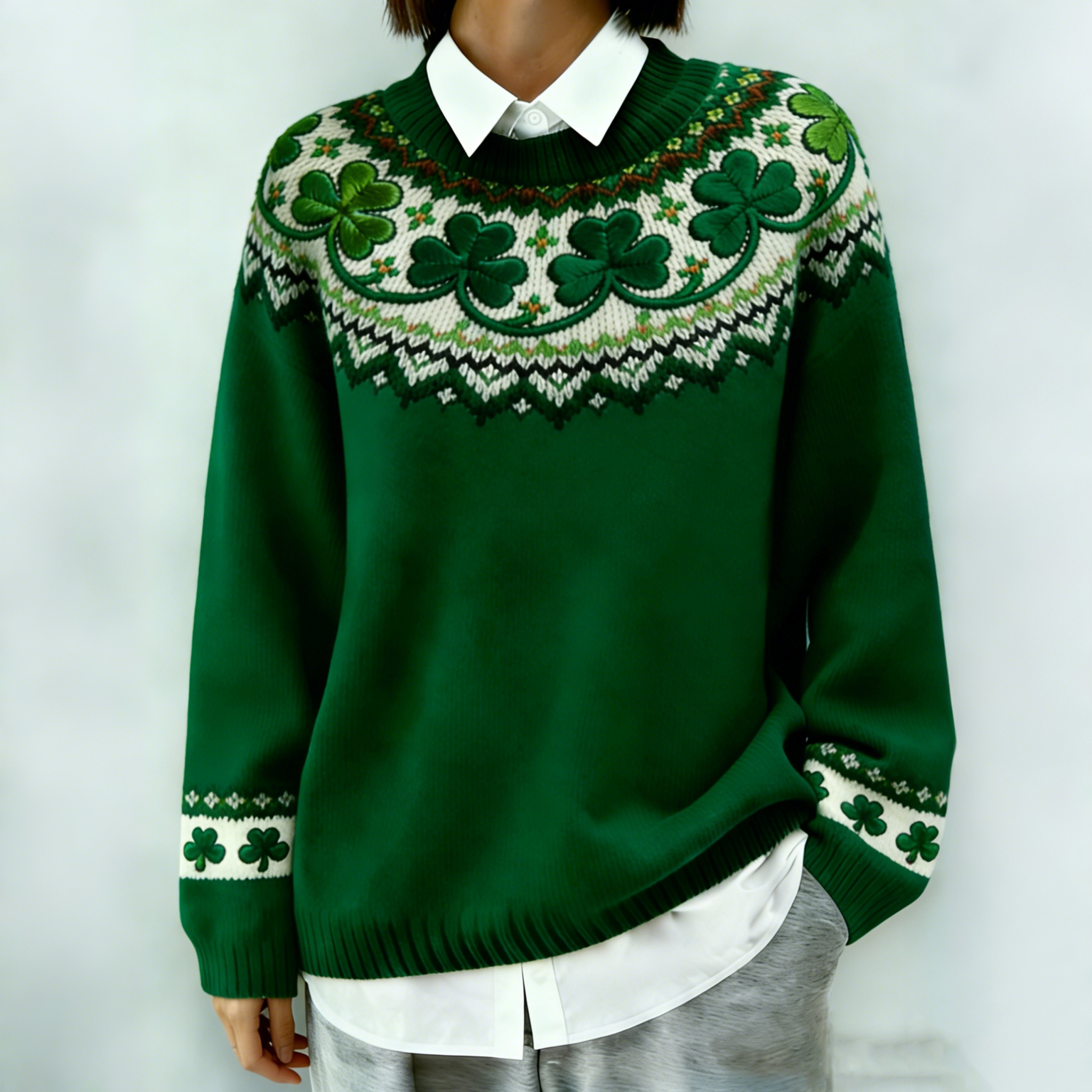 Women's St. Patrick's Day Shamrock Pattern Comfortable Knit Print Sweater