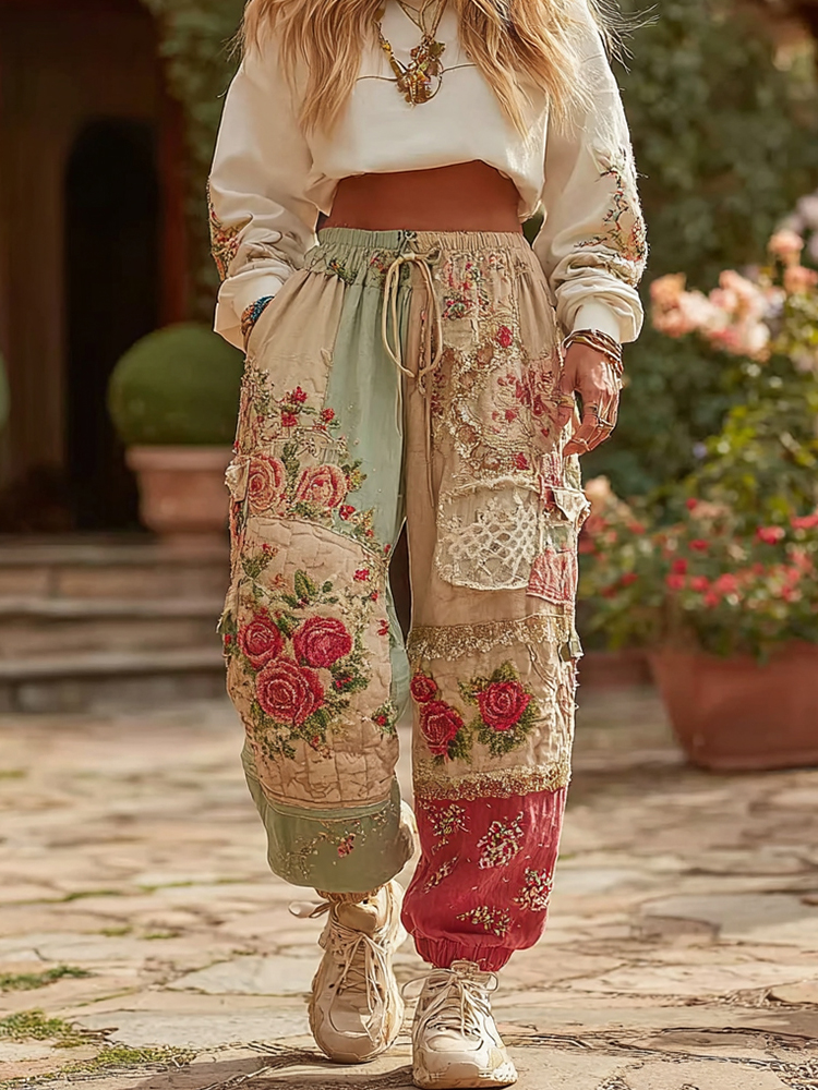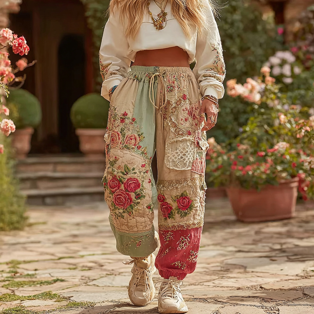 Women's Vintage Floral Patchwork Art Casual Sweatpants