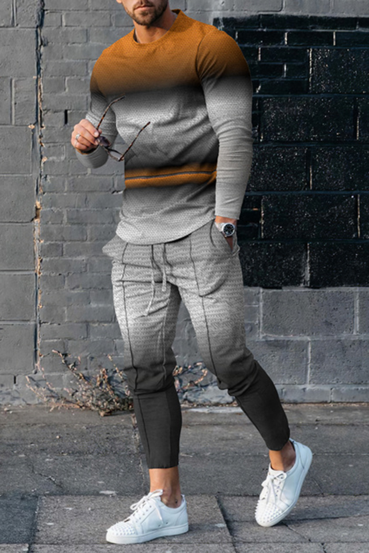 Fashion Men'S Long Sleeve T-Shirt And PantsTwo Piece Set