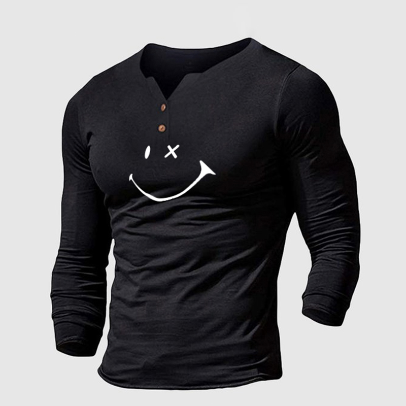 Henley Collar Solid Color Slim Fit Long Sleeve T-Shirt