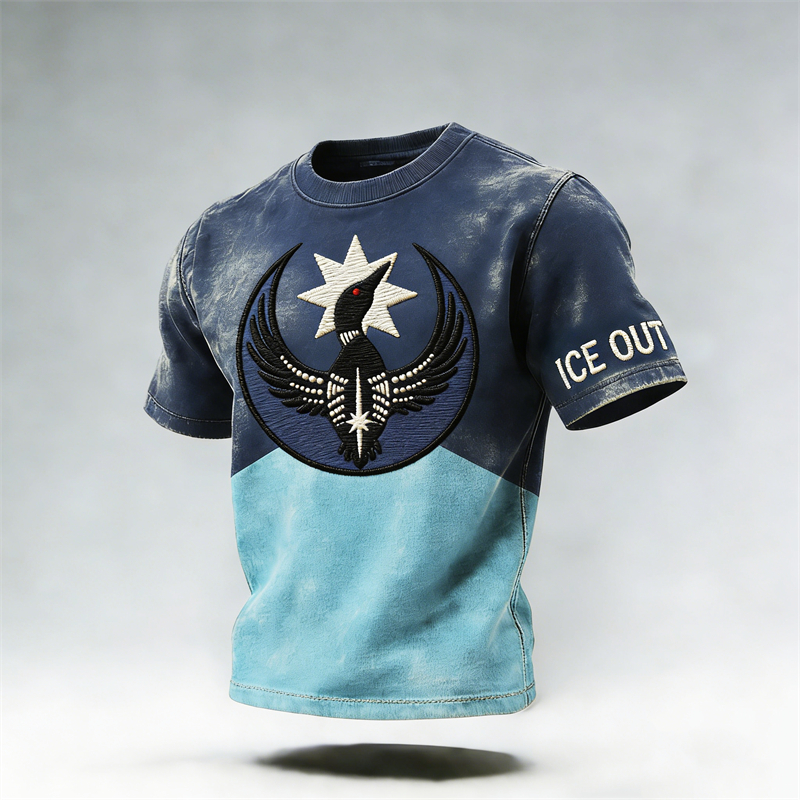Ice Out Minnesota Loon & Flag Contrast T Shirt