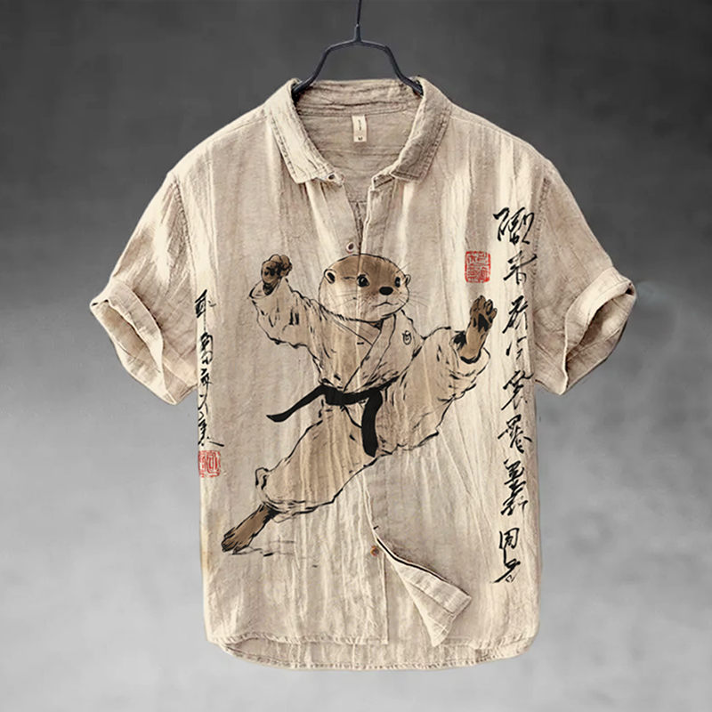 Men's Kung Fu Otter Japanese Art Short Sleeve Shirt