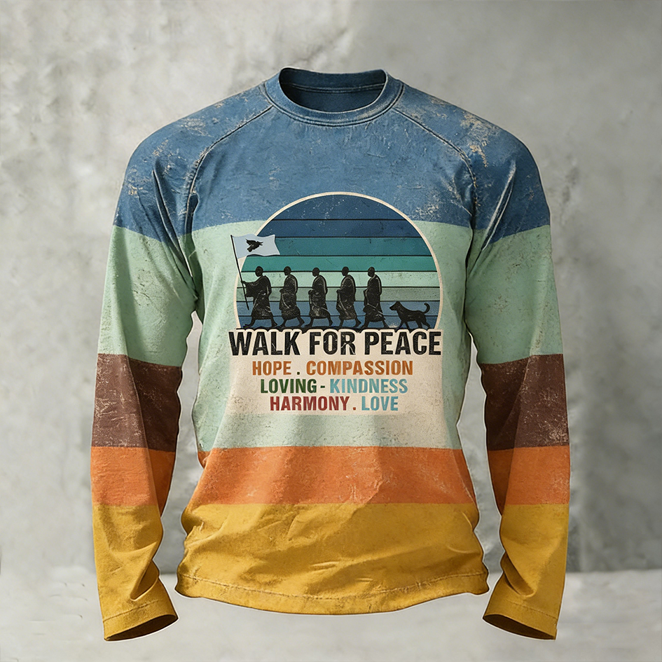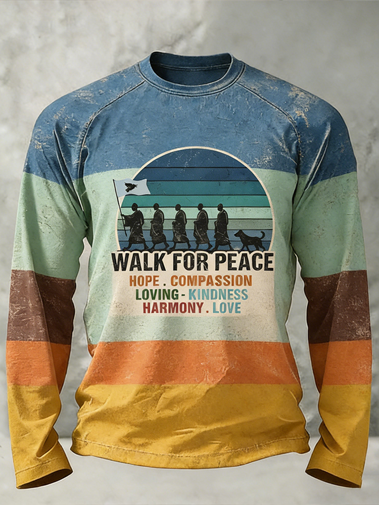 Peace Symbol Print Casual Long-sleeve T-shirt