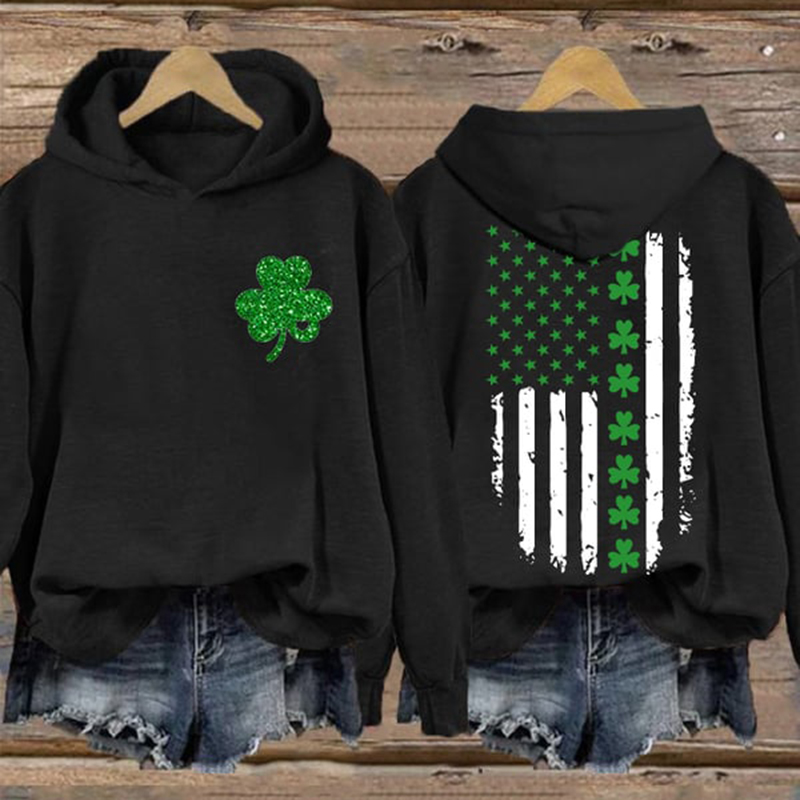 St. Patrick's Day Flag Shamrock Print Casual Hoodie