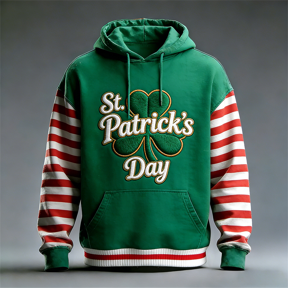 St. Patrick's Shamrock Stripe Patchwork Men's Hooded Sweatshirt