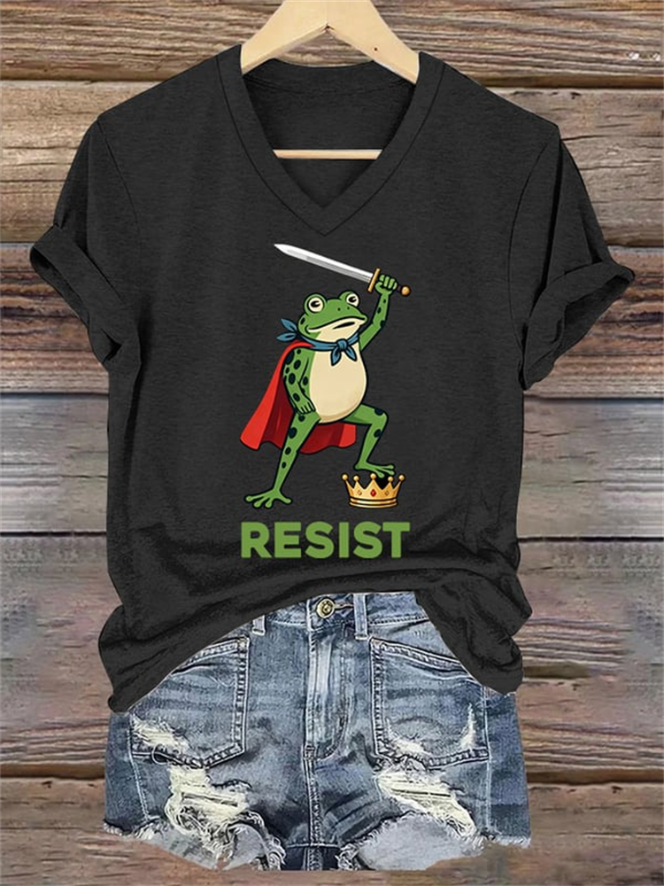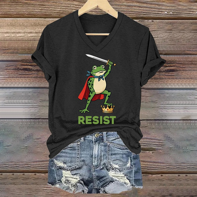 Women's Portland Frog Vintage Washed Art Print T-shirt