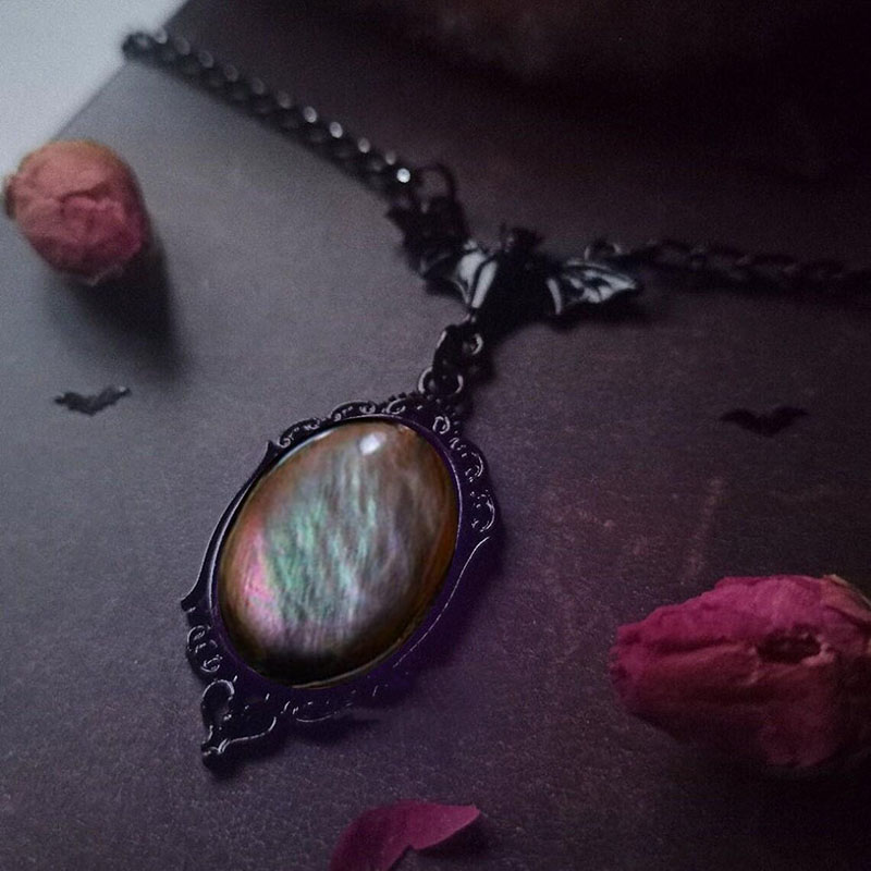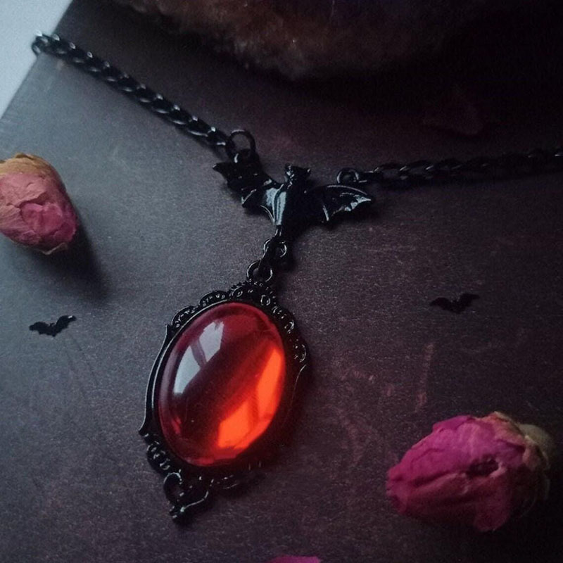 Gothic Bat Vampire Gemstone Necklace