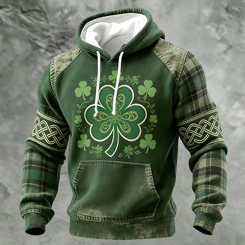 Men's Casual St. Patrick's Day Celtic Knot Shamrock Print Hoodie