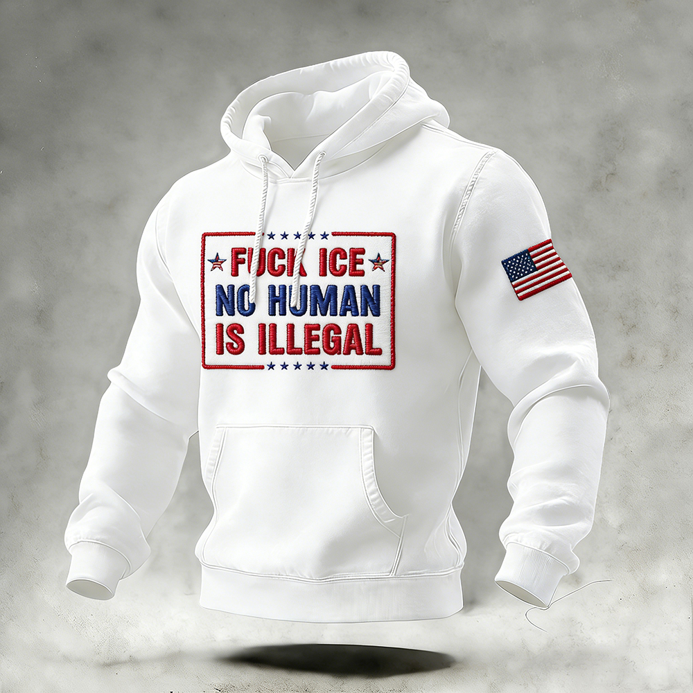 Men's Vintage Ice Out No Human Is Illegal Print Hoodie