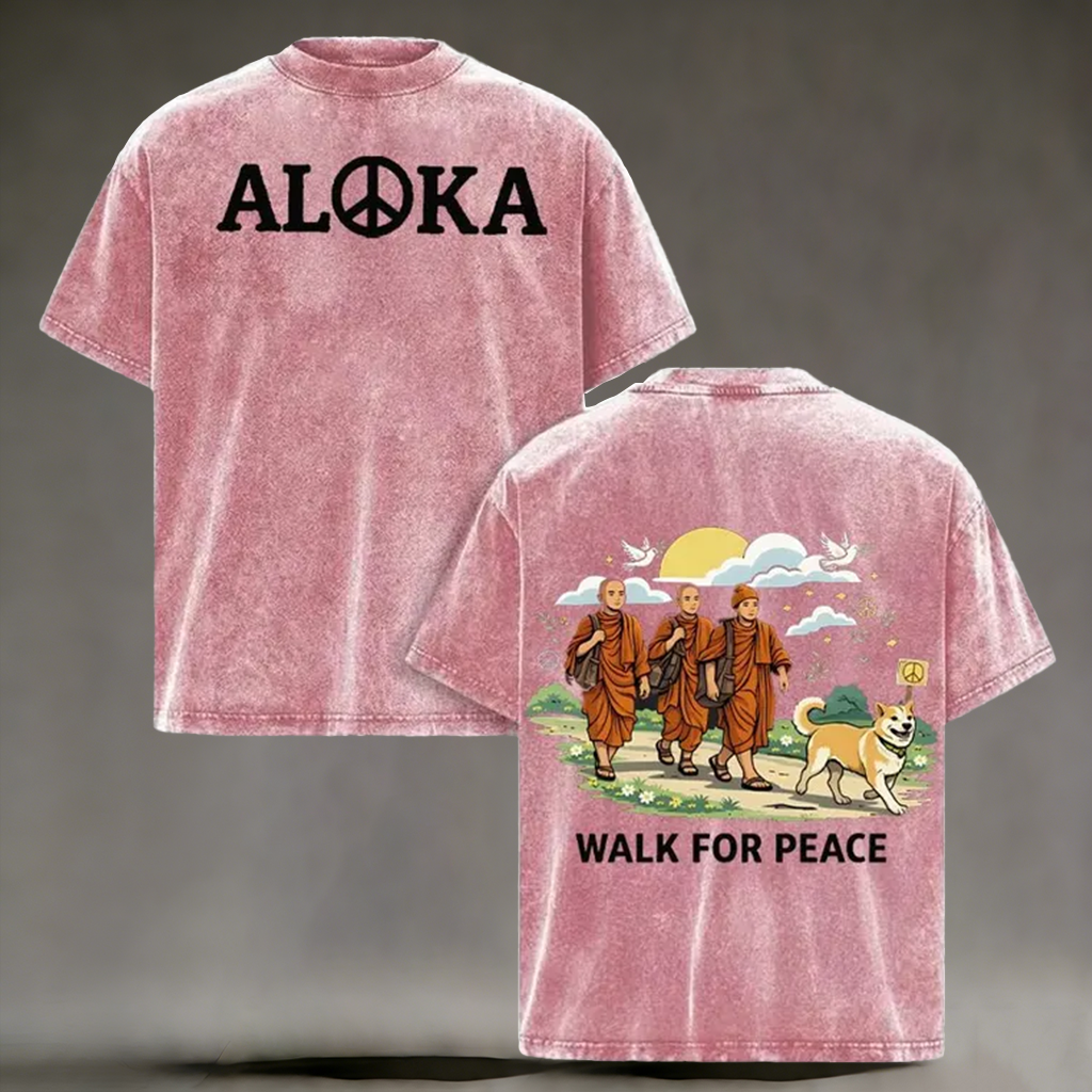 Walk For Peace Monk & Dog Washed T-shirt