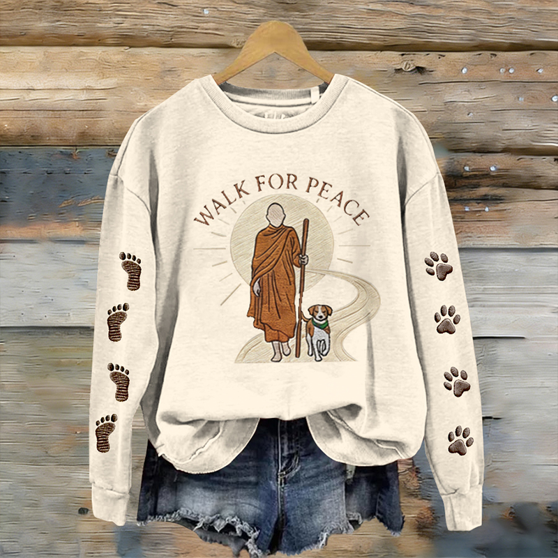 Women's Retro Walk For Peace Monks With Aloka Dog Print Sweatshirt
