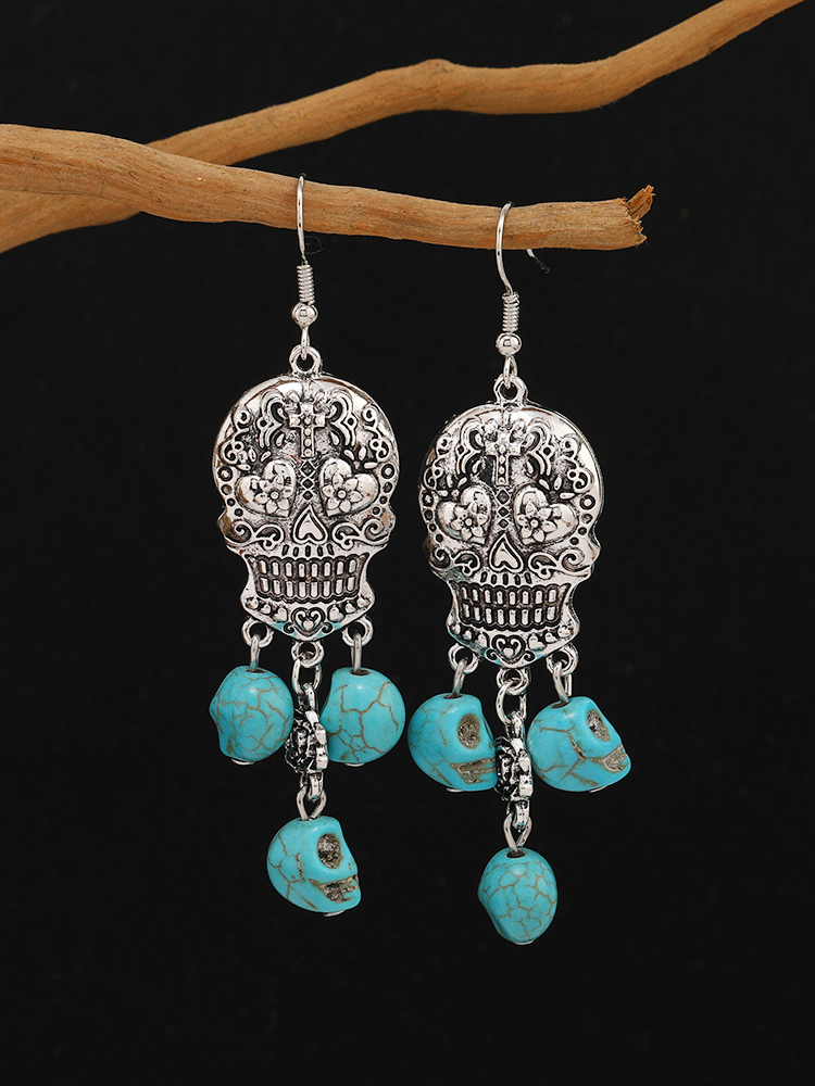 Sugar Skull Carved Turquoise Pendant Earrings