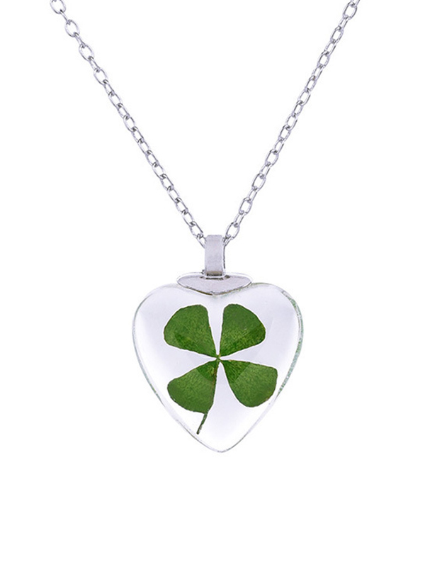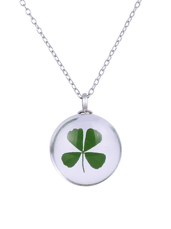 Transparent Water Drop Clover Necklace