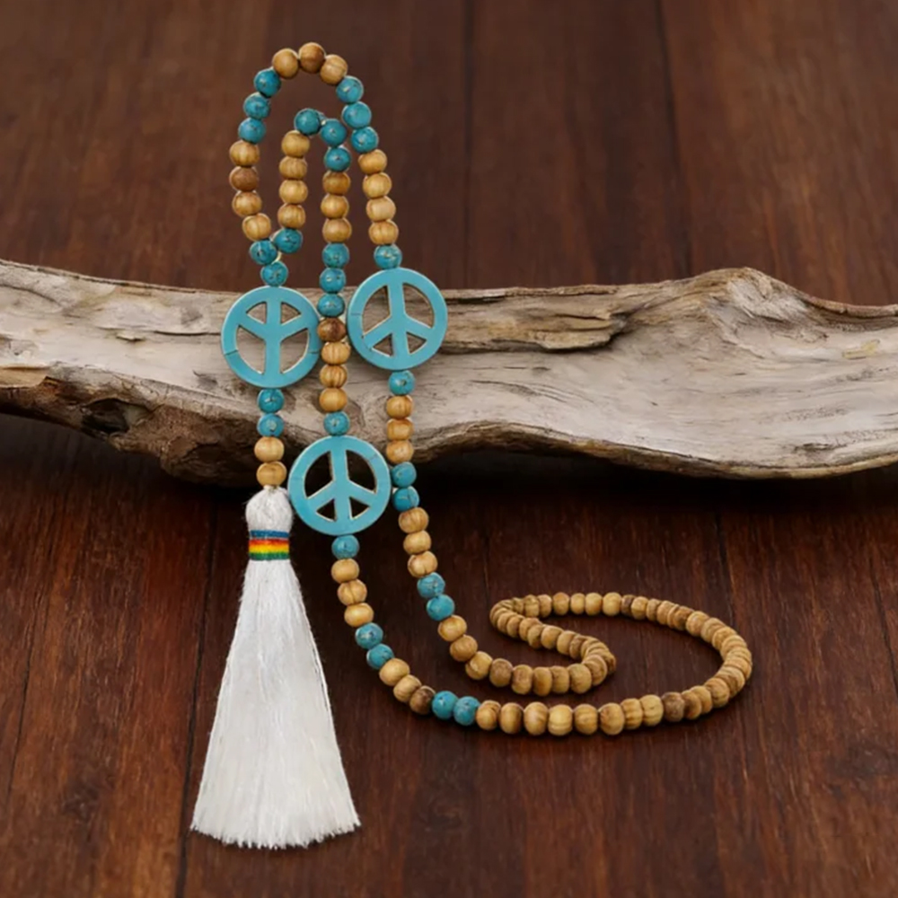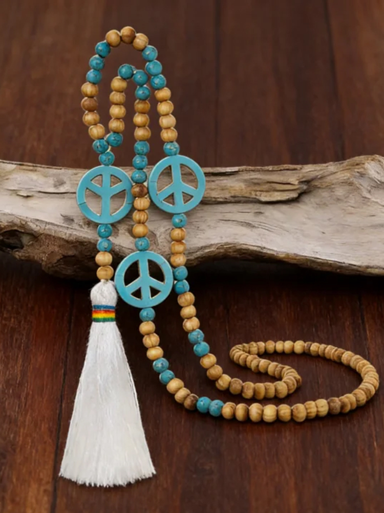 Lapis Lazuli And Peace Symbol Tassel Long Pendant Chain