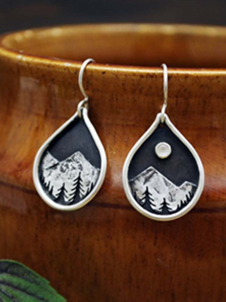 Vintage Landscape Carving Moonstone Earrings