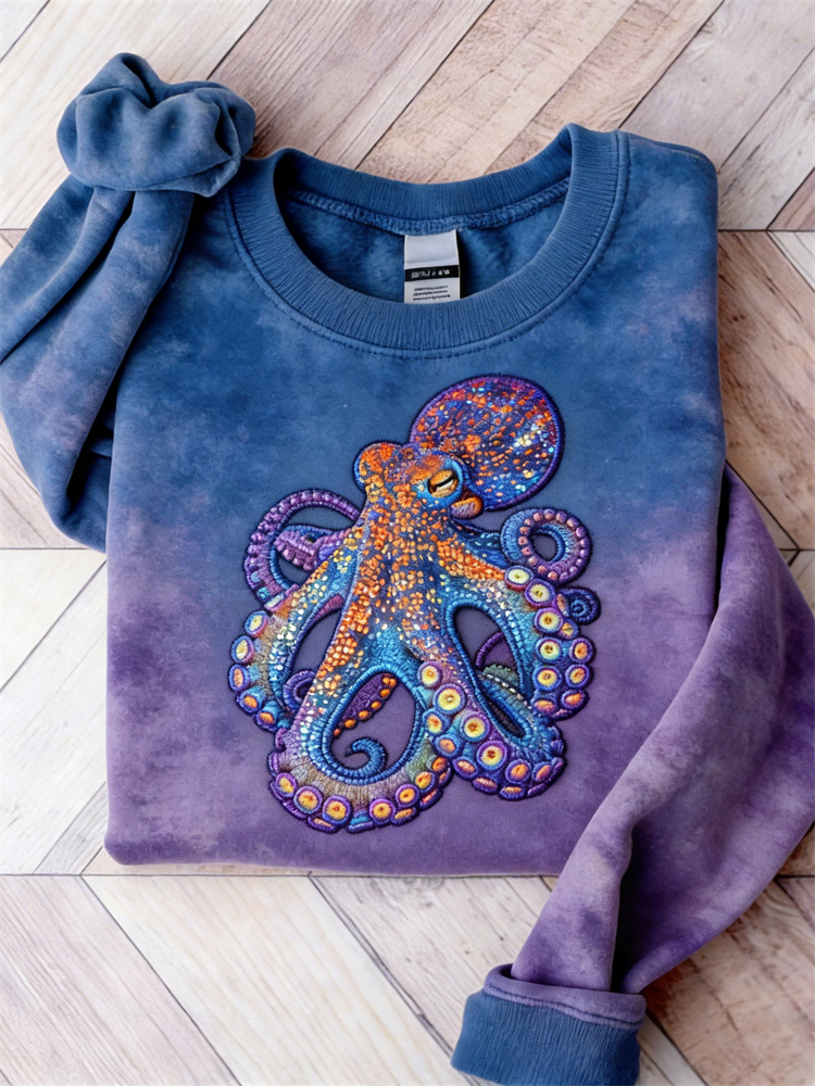 Colorful Octopus Contrast Tie Dye Washed Sweatshirt