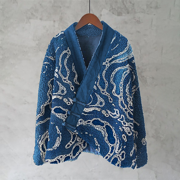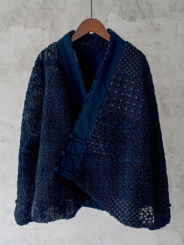 Japanese Traditional Sashiko Art Fleece Kimono Cardigan