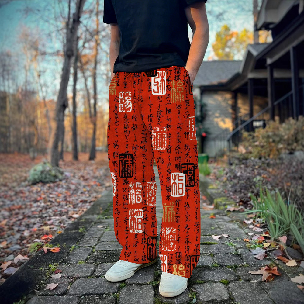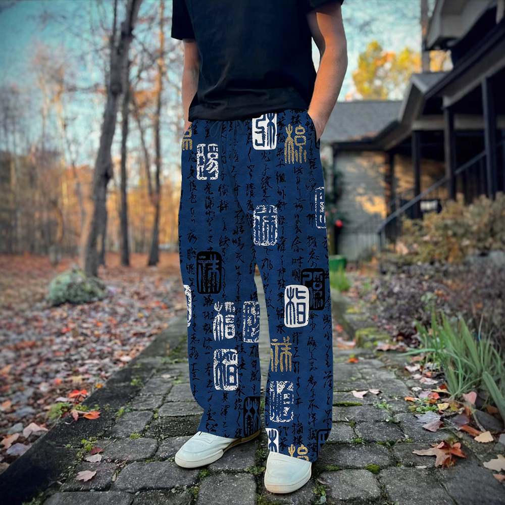 "vintage Calligraphy Art Comfy Linen Pants"