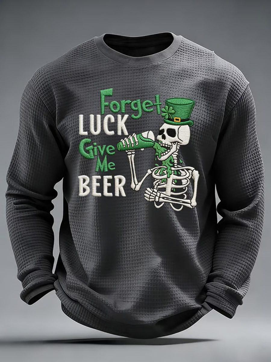 Men's Casual St. Patrick's Day Waffle-knit Long-sleeved T-shirt