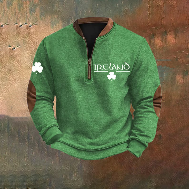 Men's Color Block St. Patrick's Day Print Zipper Collar Sweatshirt