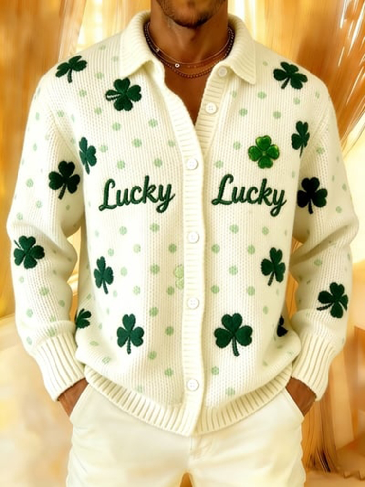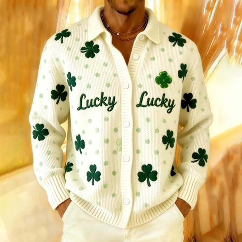 Men's St. Patrick's Day Printed Knit Cardigan Sweater