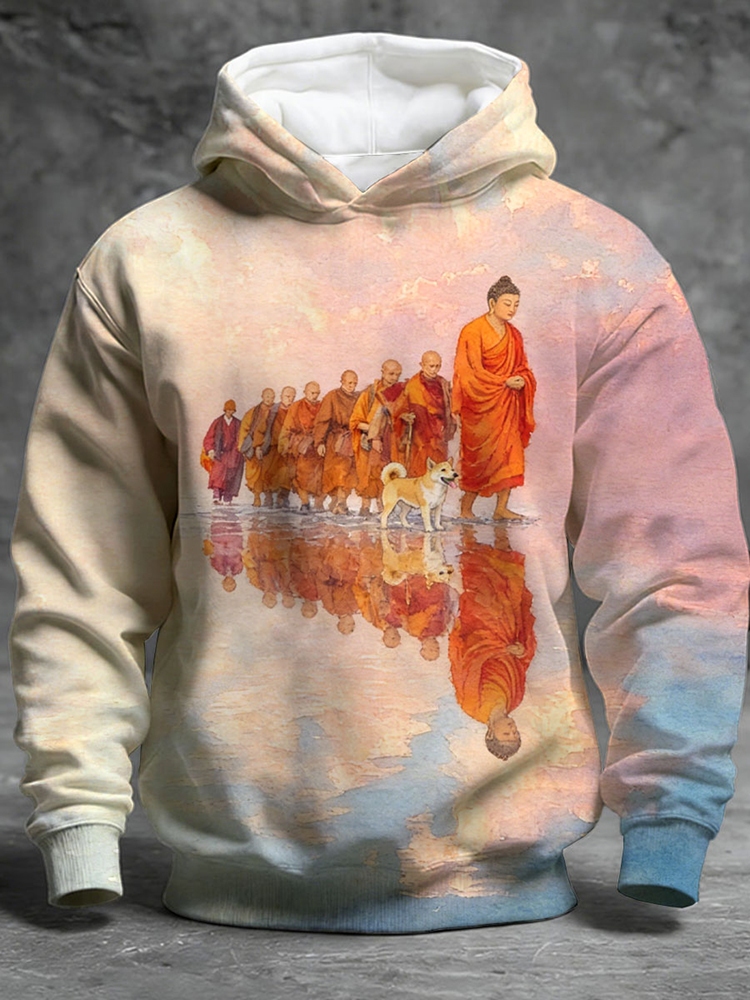 Walk For Peace Monks With Aloka Dog Watercolor Art Cozy Hoodie